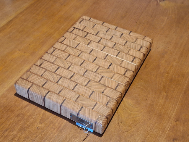 Une pièce d'artisanat conçue pour durer, mais surtout pour l'excellence. Fabriquée en bois de bout, sa réalisation est un travail minutieux étalé sur 3 jours (nécessitant 2 collages successifs pour garantir sa solidité et sa qualité).