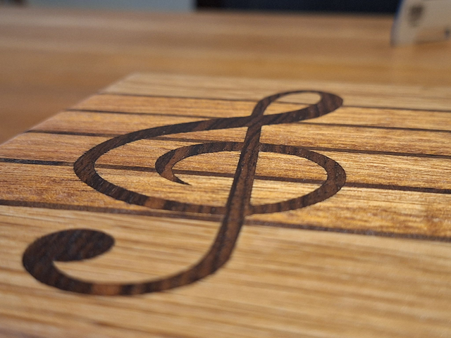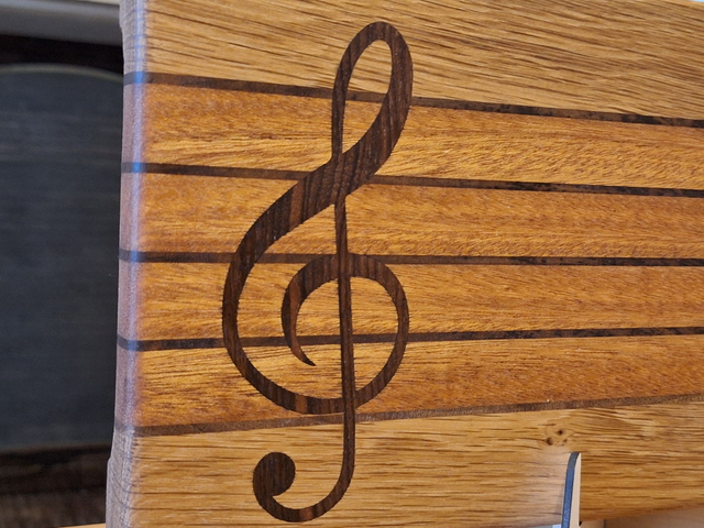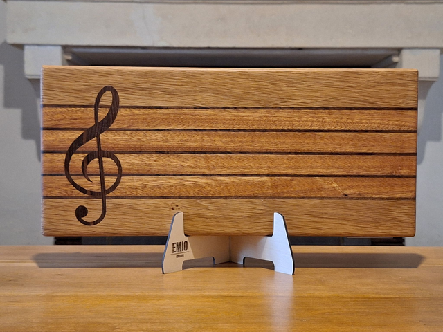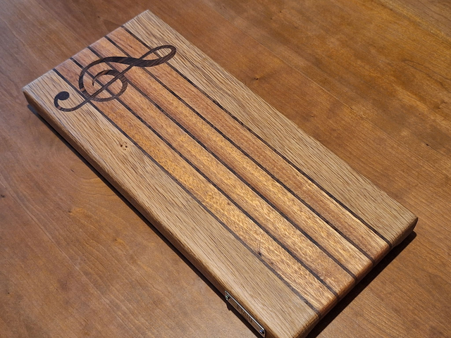 Notre magnifique planche à découper ou de présentation apéro en Chêne avec sa Clé de Sol en Noyer d’Amérique en incrustation bois est prête pour les fêtes !