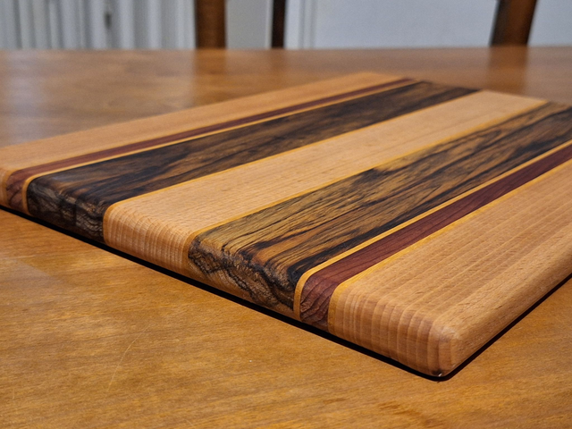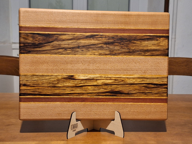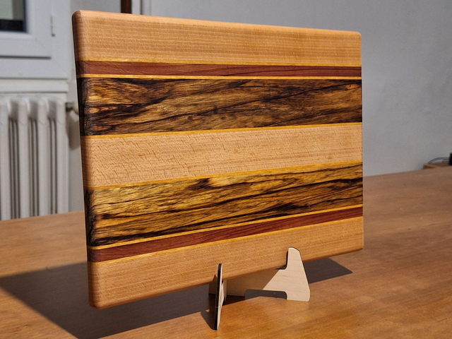 Pour cette nouvelle pièce, j'ai sélectionné des essences qui se répondent avec élégance pour créer un contraste à la fois doux et prestigieux. C'est une planche qui a été pensée pour devenir le centre de vos moments de partage, alliant la robustesse nécessaire à la découpe et l'esthétique d'un objet de présentation.